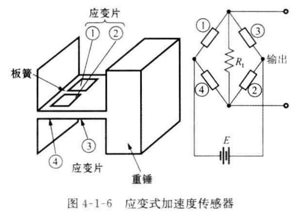 應(yīng)變片加速度傳感器3:應(yīng)變片加速度傳感器是由一個(gè)板簧支承重錘所構(gòu)成 的振動(dòng)系統(tǒng)。在板簧兩面分別貼兩個(gè)應(yīng)變片,應(yīng)變片受振動(dòng)產(chǎn)生應(yīng)變,其電阻值的 變化通過(guò)電橋電路的輸出電壓被檢測(cè)出來(lái)。