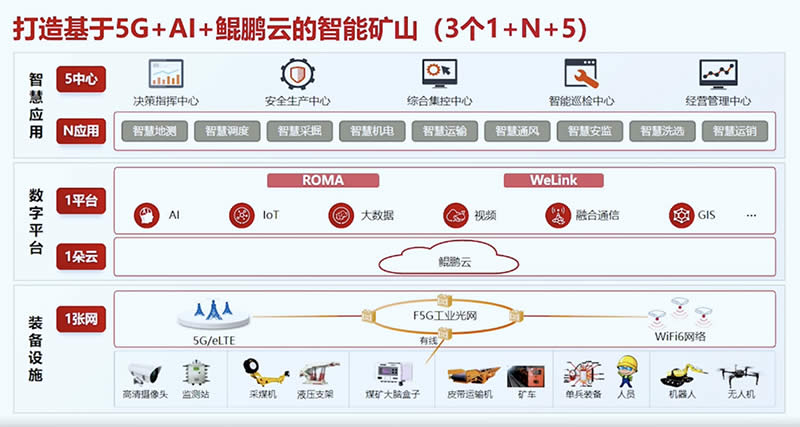 一張網(wǎng)、一朵云、一平臺(tái)、N應(yīng)用、五中心,組成了華為智能礦山聯(lián)合解決方案的整體面貌。