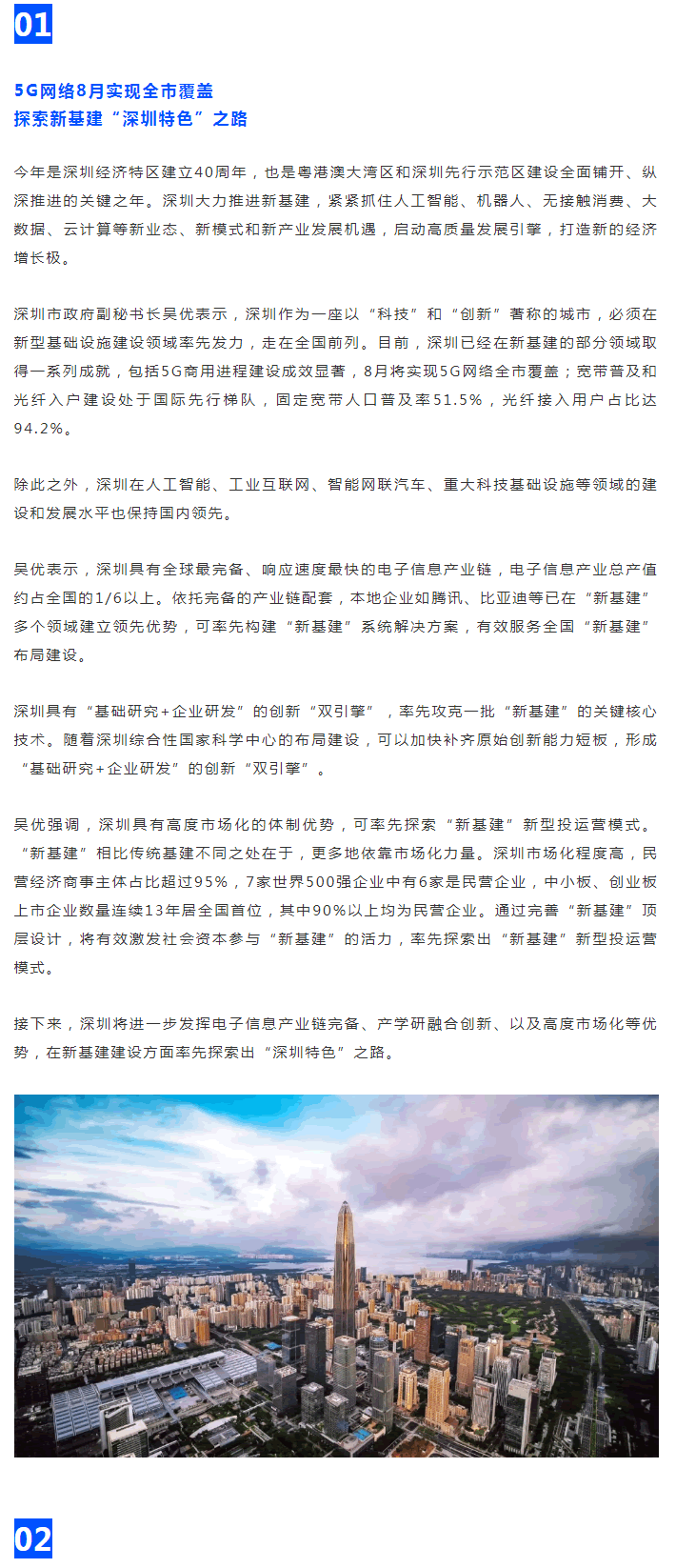 日前,深圳市出臺(tái)《關(guān)于加快推進(jìn)新型基礎(chǔ)設(shè)施建設(shè)的實(shí)施意見(jiàn)(2020-2025年)》(以下簡(jiǎn)稱(chēng)《實(shí)施意見(jiàn)》)。7月21日,深圳市政府新聞辦聯(lián)合深圳發(fā)布舉行新聞發(fā)布會(huì),介紹新基建總體情況和發(fā)展優(yōu)勢(shì),并對(duì)《實(shí)施意見(jiàn)》做了解讀。