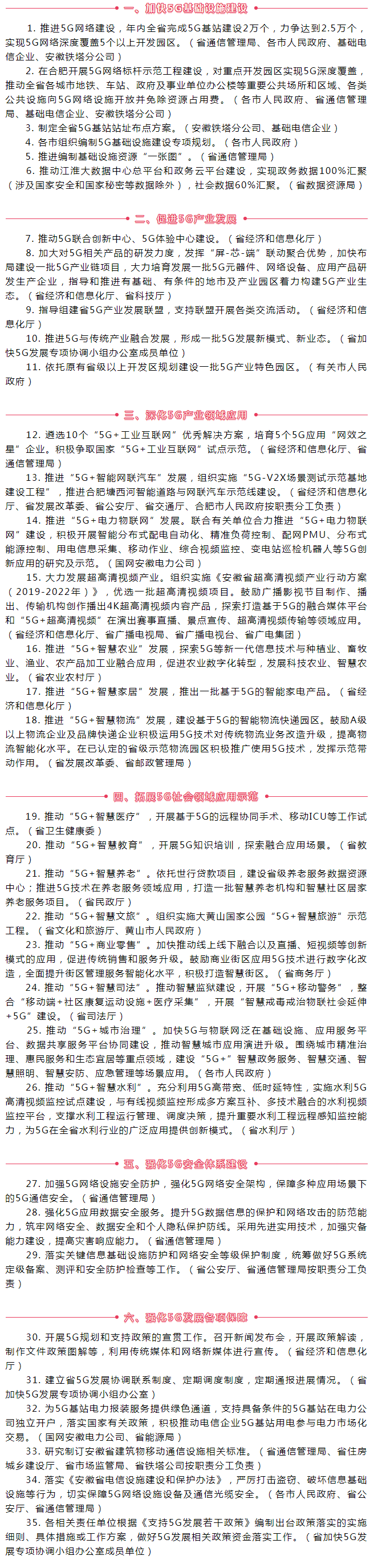 現(xiàn)將《2020年安徽省5G發(fā)展工作要點(diǎn)》印發(fā)你們,請結(jié)合職責(zé)分工,抓好落實(shí)。