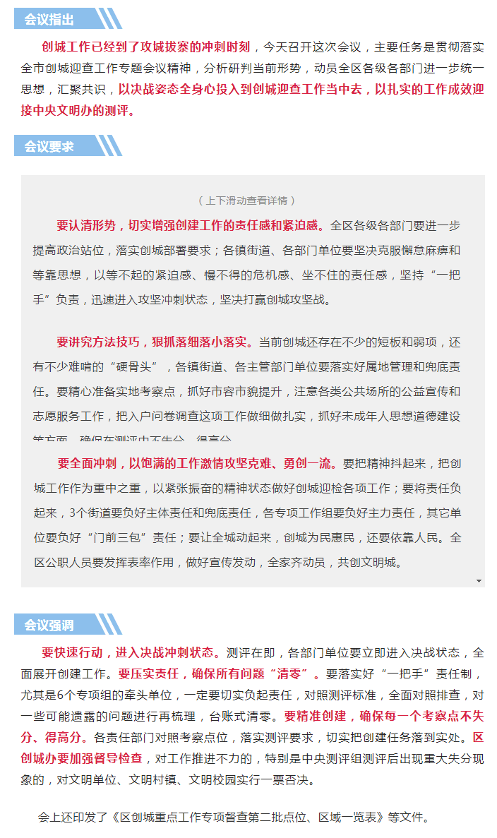 8月26日下午,東港區(qū)召開創(chuàng)城迎查工作專題會議,進(jìn)一步學(xué)習(xí)貫徹落實(shí)全市創(chuàng)城迎查工作專題會議精神,動員各級各部門以決戰(zhàn)決勝、沖鋒沖刺的姿態(tài),多面查找不足,盡快補(bǔ)齊短板,以優(yōu)異成績迎接文明辦測評。