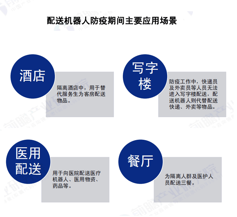 防疫機器人在配送L域主要企業(yè)有普渡科技、擎朗智能、賽特機器人、云跡科技等企業(yè),要應用 于疫情防護中的醫(yī)用配送、餐飲服務、樓宇無人化配送等工作