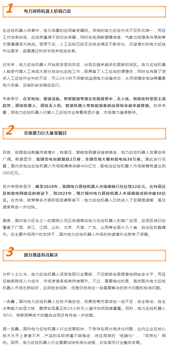 在特G壓及智能電網(wǎng)建設(shè)的推動下,到2023年,預(yù)計國內(nèi)電力巡檢機(jī)器人市場規(guī);?qū)⑼黄?0億元。