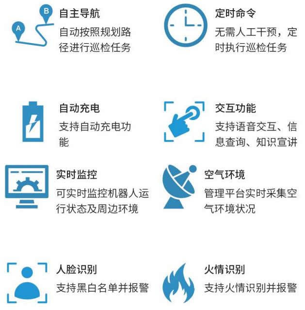 防爆巡檢機(jī)器人,它是一種綜合了自主導(dǎo)航、音視頻智能識(shí)別、危險(xiǎn)預(yù)警、人員識(shí)別、人體跟隨等多種智能技術(shù)相融合的綜合性安防機(jī)器人,可以協(xié)助人們完成重要場(chǎng)所的監(jiān)控巡邏保安工作,同時(shí)可結(jié)合固定監(jiān)控和環(huán)境信息的收集分析,構(gòu)成完整的安防監(jiān)控系統(tǒng),滿(mǎn)足數(shù)據(jù)中心、酒店、商場(chǎng)、辦公區(qū)域等場(chǎng)所的安全巡檢需求。