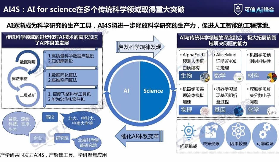 AI for Science在多個(gè)傳統(tǒng)科學(xué)L域取得重大突破。隨著人工智能技術(shù)的快速發(fā)展和大規(guī)模應(yīng)用,AI在逐漸成為科學(xué)研究新的生產(chǎn)工具,AI4S將進(jìn)一步釋放科學(xué)研究的生產(chǎn)力,促進(jìn)人工智能的工程落地。一方面,AI與傳統(tǒng)科學(xué)L域的深度融合,J大拓展該L域解決問(wèn)題的能力,目前AI在生物、數(shù)學(xué)、材料、物理、基因、化學(xué)等基礎(chǔ)科學(xué)L域都取得了諸多成果和突破,并對(duì)科學(xué)研究范式產(chǎn)生了深刻的影響,例如,目前人工智能已經(jīng)能夠預(yù)測(cè)幾乎所有的生物蛋白質(zhì)的可能結(jié)構(gòu),被譽(yù)為人類在21世紀(jì)取得的重要的科學(xué)突破之一,可能開啟“數(shù)字生物學(xué)”的新時(shí)代。另一方面,傳統(tǒng)科學(xué)L域的進(jìn)步和對(duì)AI技術(shù)的需求加速了AI本身的發(fā)展。當(dāng)前產(chǎn)學(xué)研共同發(fā)力人工智能與科學(xué)的融合,產(chǎn)業(yè)界聚焦工具創(chuàng)新,開源工具和基于開源工具產(chǎn)生的創(chuàng)新成果呈爆發(fā)趨勢(shì),AI4S的研究范圍也擴(kuò)展到了更多基礎(chǔ)問(wèn)題L域。G校和研究院聚焦算法和應(yīng)用,用AI算法更好地將科學(xué)計(jì)算和物理模型相連接,進(jìn)而指導(dǎo)科學(xué)與產(chǎn)業(yè)創(chuàng)新。