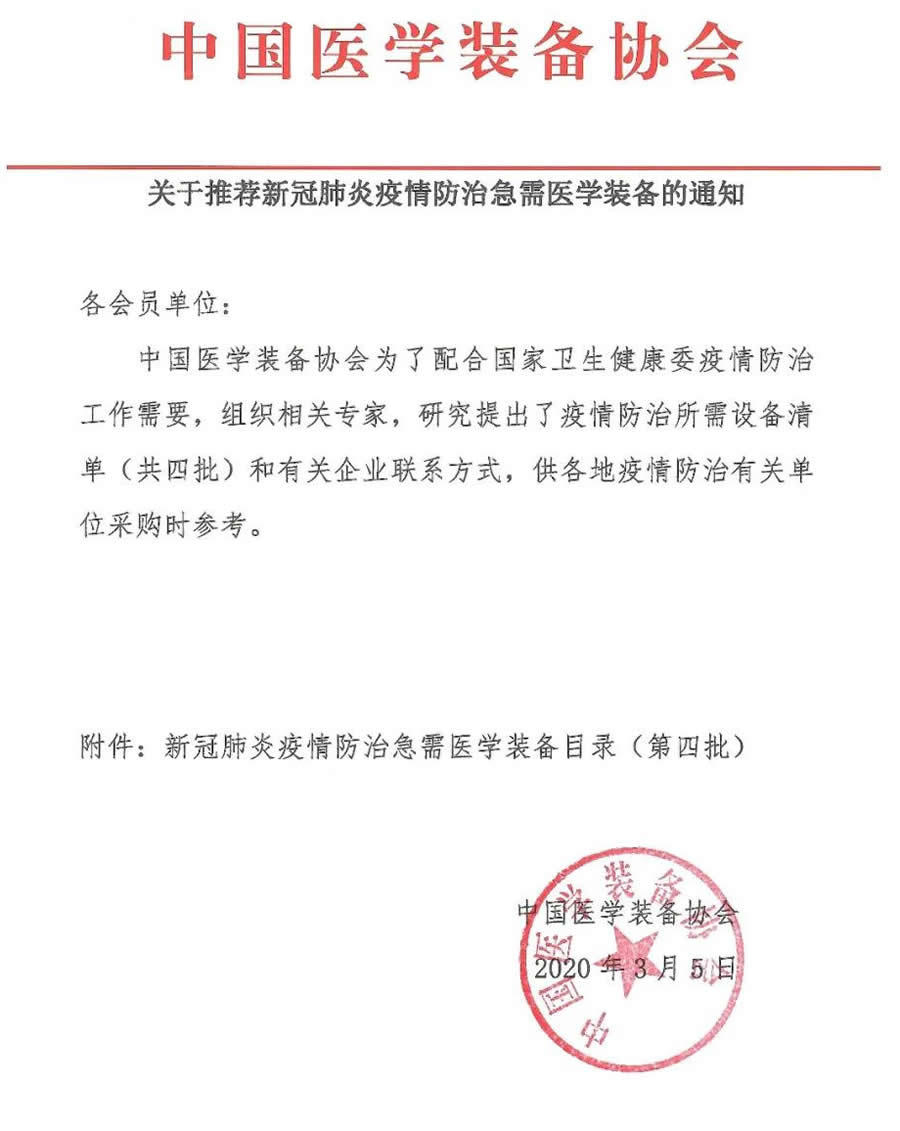 中國(guó)醫(yī)學(xué)裝備協(xié)會(huì)為了配合國(guó)家衛(wèi)生健康委疫情防治工作需要,組織相關(guān)專(zhuān)家,研究提出了疫情防治所需設(shè)備清