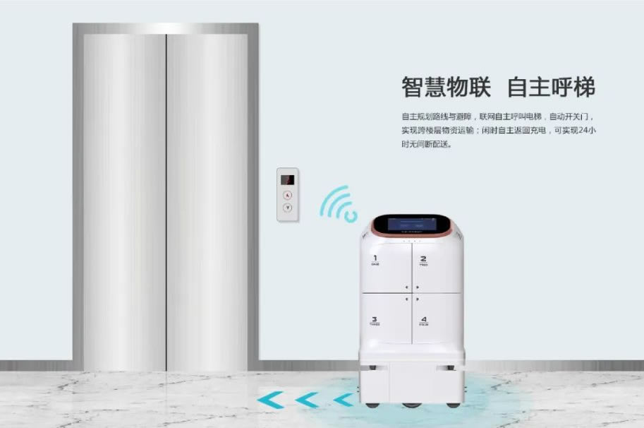 配送服務(wù)是機(jī)器人核心的功能,創(chuàng)澤智能配送機(jī)器人針對(duì)配送全流程進(jìn)行體驗(yàn)優(yōu)化,真正實(shí)現(xiàn)了全程無接觸配送。配備艙體有超大的儲(chǔ)物空間,聯(lián)網(wǎng)自主呼叫電梯,實(shí)現(xiàn)跨樓層物資運(yùn)輸;在G峰時(shí)段支持多機(jī)協(xié)作,放取貨品后自動(dòng)關(guān)閉艙門,到達(dá)指定房間后,通過住房間內(nèi)的門鈴、電話、小程序等方式通知客人取貨,在配送途中遇到客人,會(huì)貼心的送去問候。