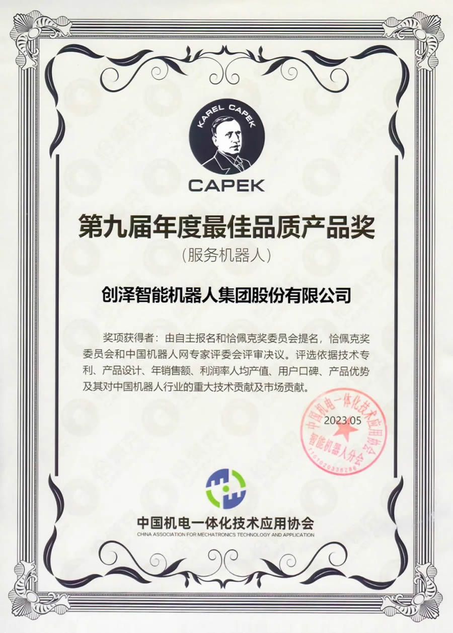 創(chuàng)澤集團(tuán)作為商用服務(wù)機(jī)器人行業(yè)L軍企業(yè),受邀參加本次G峰論壇。憑借多年在人工智能服務(wù)機(jī)器人L域深耕的綜合實(shí)力、創(chuàng)新技術(shù)和豐富的項(xiàng)目落地案例,實(shí)力斬獲恰佩克“第九屆年度佳品質(zhì)產(chǎn)品獎(jiǎng)”。
