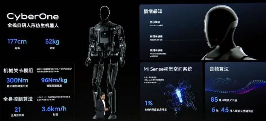 小米于2022年8月公布一款全尺寸人形機器人CyberOne。