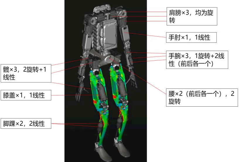 特斯拉人形機(jī)器人 Optimus采用電機(jī)驅(qū)動(dòng),身體擁有 28個(gè)執(zhí)行器,并且使用旋轉(zhuǎn)執(zhí)行器和線性執(zhí)行器兩種方案。