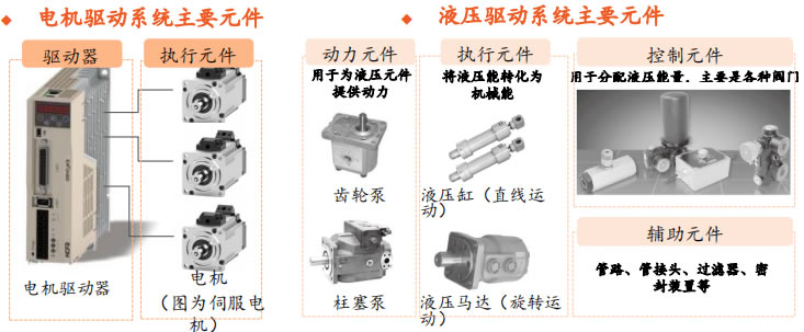 電機驅動:使用普遍、成熟的驅動方式,利用通電線圈在磁場中受力轉動的現象制成,將電能轉化為機械能。由于