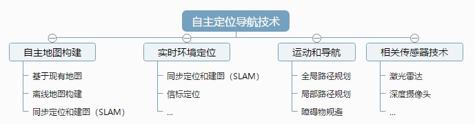 按照所實現(xiàn)的功能劃分,自主定位導(dǎo)航技術(shù)主要包含了以下內(nèi)容: